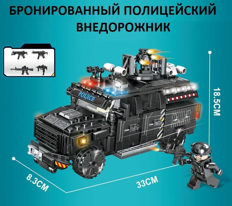 Купить Конструктор Полицейская Машина 4 в 1 — 436 деталей / Джип Трансформер / лего фигурки полиция / игровой набор Спецназ / лего солдаты / военная техника внедорожник SWAT с доставкой по всей России.