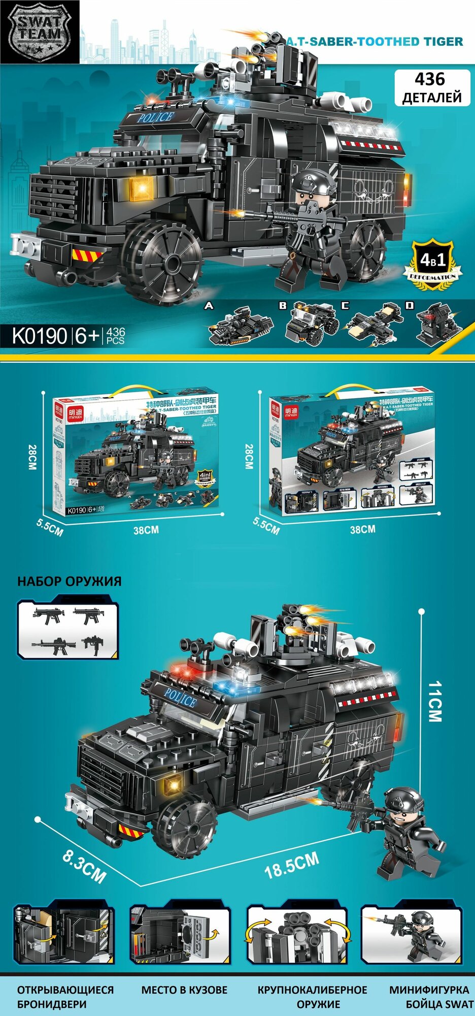 Конструктор Полицейская Машина 4 в 1 — 436 деталей / Джип Трансформер / лего фигурки полиция / игровой набор Спецназ / лего солдаты / военная техника внедорожник SWAT: сравнение цен, характеристики, фото, актуальное наличие и цены.