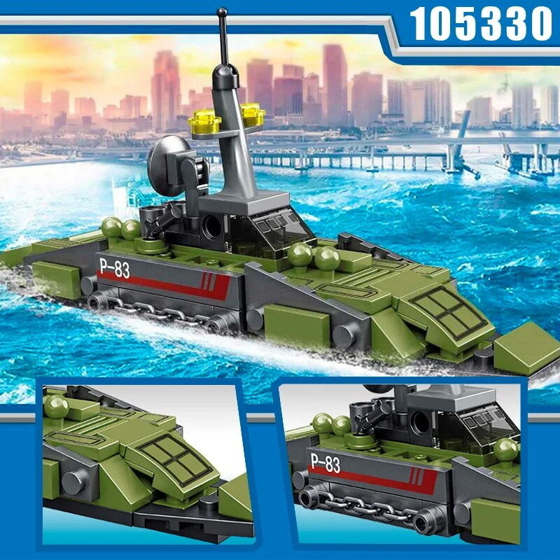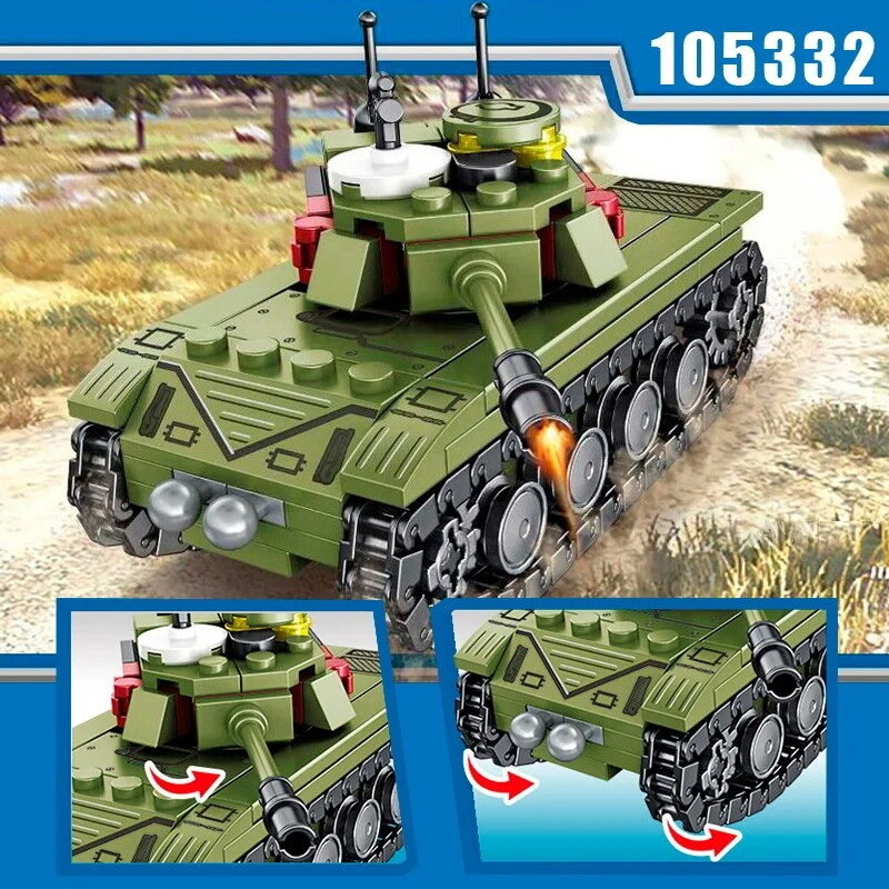 Так что ребенок благодаря набору 105330-105335 Sembo Block Трансформер: 6 в 1 становится обладателем фактически сразу семи различных игрушек. И каждая из них наделена хорошим игровым функционалом. С помощью боевой техники он сможет устраивать настоящие баталии на полях сражений, а для решения более специфических задач привлечь боевого робота.