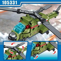 Гусеницы танков двигаются, башня с основным орудием разворачивается в любую сторону, у винтокрылых летательных аппаратов по сторонам установлены выдвижные ракетные установки и так далее. С таким вооружением, каким завладеет ребенок вместе с конструктором 105330-105335 Sembo Block Трансформер: 6 в 1 можно будет успешно решить любую боевую задачу.