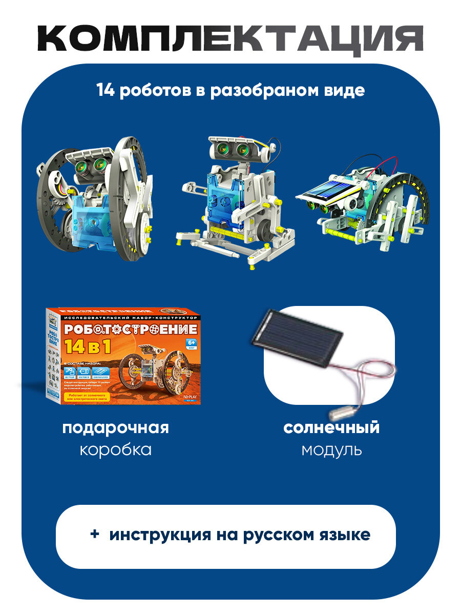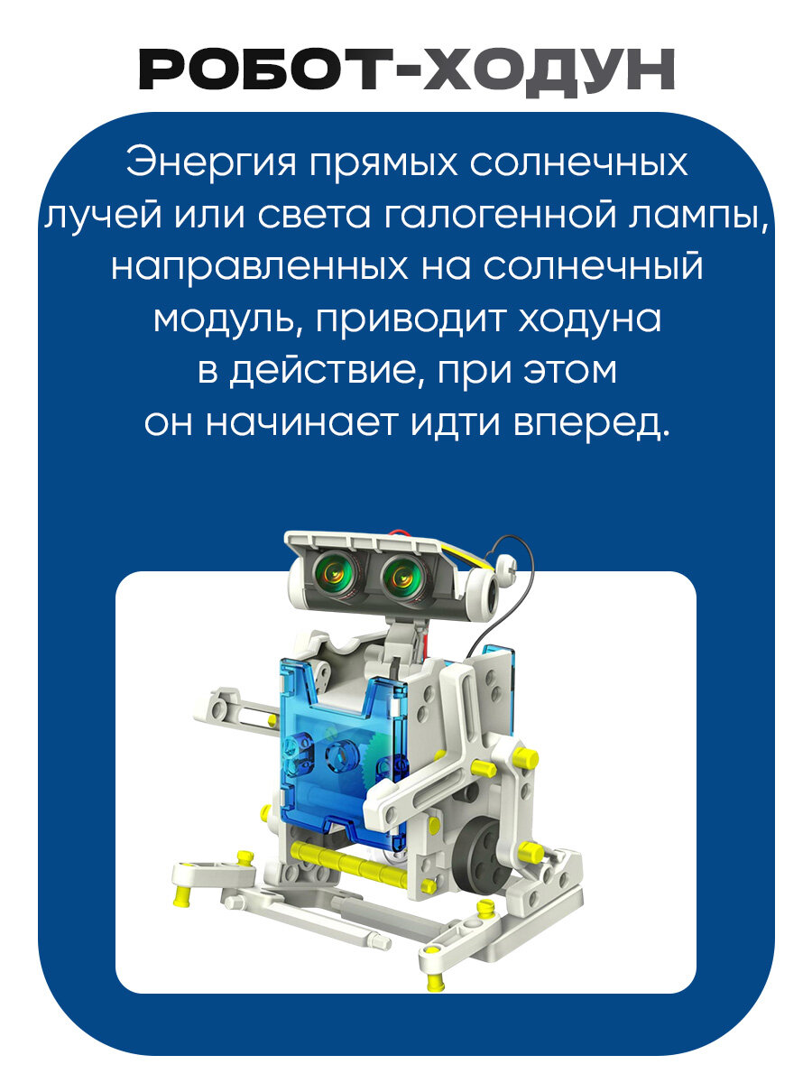 | Дополнительная информация | в наборе есть водоплавающие модели; все роботы работают от солнечной или электрической энергии |