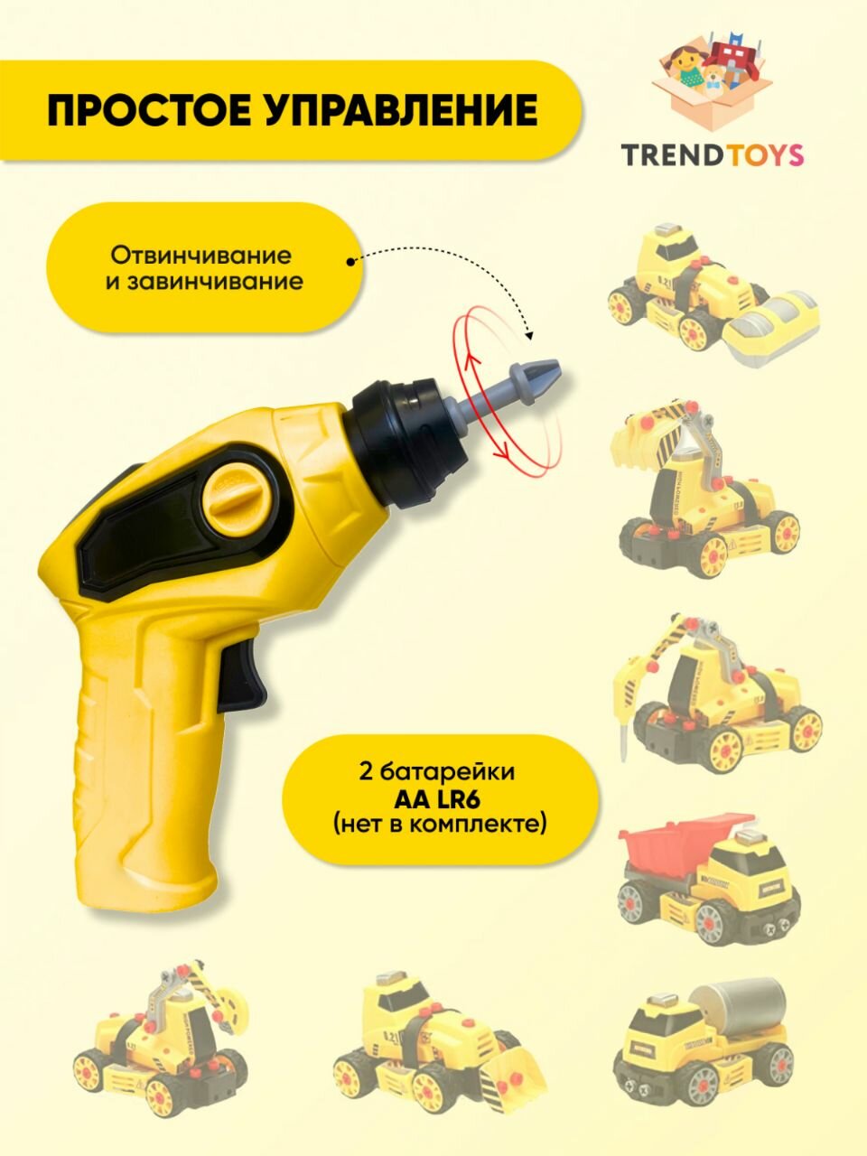 Купить Конструктор с отверткой и шуруповертом TrendToys строительные машинки 7 в 1, 68 деталей с доставкой по всей России.