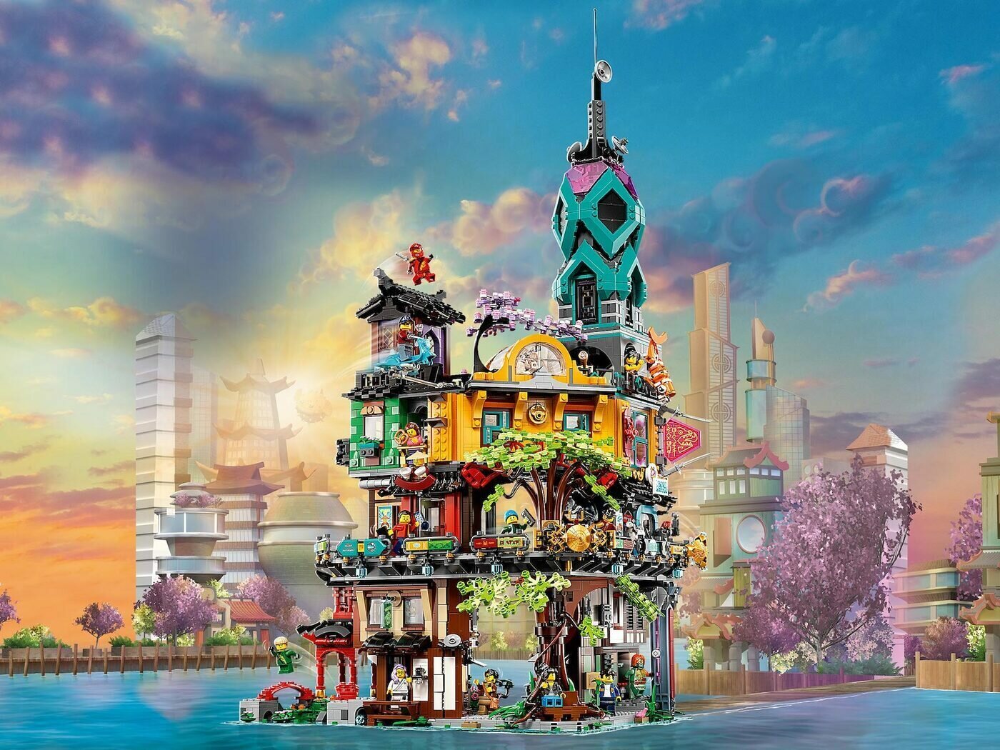Вновь испытайте все волнения и прилючения 10-ти лет Ниндзяго-Сити с этой потрясающей трехэтажной моделью и садом. В наборе есть 19 минифигурок, так что вы можете вновь объединиться с ниндзя и их союзниками, чтобы разыграть любимые динамичные сцены, или же просто с гордостью выставить эту зрелищную модель напоказ. Эта потрясающая игрушка для сборки способна увлечь как опытных, так и совсем юных поклонников.