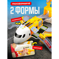 В комплект игрушки для мальчиков входят грузовой самолёт с механическим подъемным краном, трек, три разные машинки, дорожные знаки и подробная инструкция. Инерционный самолёт включает в себя встроенную парковку для полицейских машинок, чем выгодно отличается в сравнении с другими трансформерами игрушками. Ваш малыш сможет устраивать необычные гонки по спуску дороги, а кран - подъёмник наведёт порядок в развлекательном комплексе.