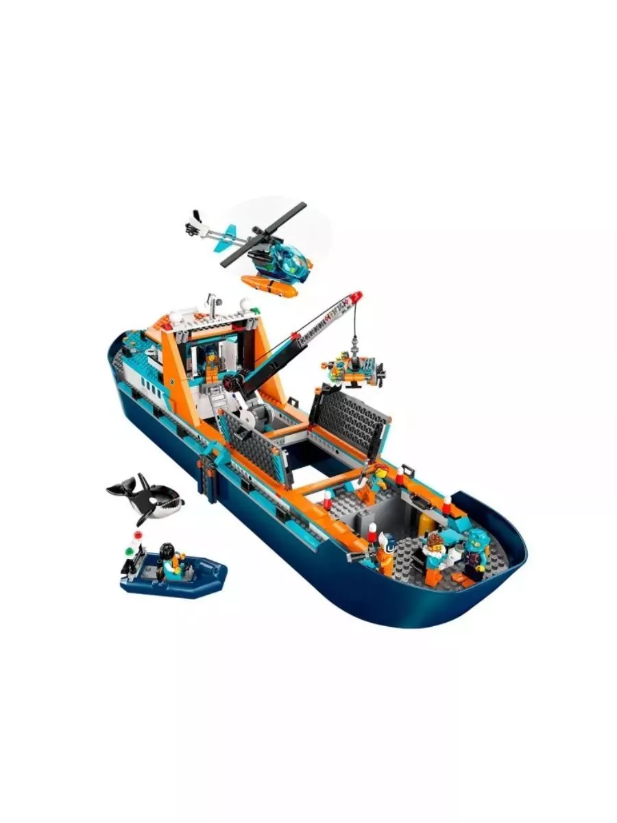 Присоединяйтесь к опытной команде исследователей и отправляйтесь в смелые путешествия на борту могучего корабля-исследователя Арктики! Запустите вертолет, чтобы провести вас через покрытые льдом моря в поисках затонувшего корабля викингов, нагруженного сокровищами. Запустите инспекционную подводную лодку в ледяную воду, где наблюдает любопытная косатка. Затем наденьте гидрокостюм, сядьте на лодку и приготовьтесь раскрыть тайны Северного Ледовитого океана! Веселые приключения ждут вас на горизонте с могучим кораблем исследователей Арктики. Эта огромная плавучая игрушечная лодка наполнена реалистичными деталями для творческих исследовательских приключений. Этот премиальный игровой набор также включает в себя вертолет, шлюпку, подводную подводную лодку ROV и затонувший корабль викингов, а также сундук с сокровищами, 7 минифигурок и фигурку косатки. Приключения без ограничений Дети растут в окружении удивительных транспортных средств и машин, и с наборами City они могут исследовать их вблизи с реалистичными моделями и забавными персонажами, которые вдохновляют на неограниченные творческие игры. Объедините этот набор с другими из серии City, чтобы получить еще больше удовольствия. Игровой набор для исследования океана, состоящий из нескольких моделей. Этот игровой набор ждет часы насыщенных действием океанских приключений. Что в коробке? - Все, что нужно детям, чтобы построить игрушечный исследовательский корабль, вертолет, лодку, подводную лодку ROV и затонувший корабль викингов, а также 7 минифигурок и фигурку косатки. Особенности и функции. Дети могут управлять кораблем на воде и разворачивать подводную лодку ROV с помощью телескопической стрелы крана. Подарок для начинающих исследователей. Этот игрушечный корабль станет веселым подарком на день рождения, праздник или любой другой день для детей в возрасте от 7 лет, которые любят крутые игрушки. Размеры. Размеры корабля Arctic Explorer: более 7,5 дюймов (19 см) в высоту, 28 дюймов (71 см) в длину и 6,5 дюймов (17 см) в ширину. Аксессуары для минифигурок.