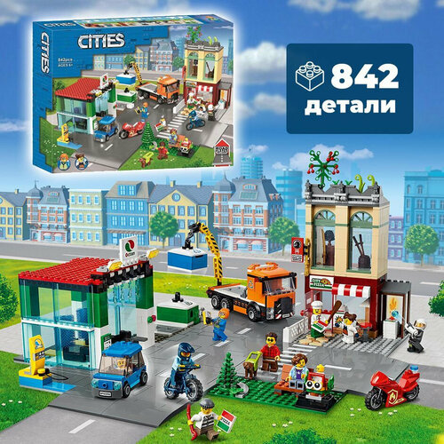 Центр города всегда в движении. Шерли Кипер приехала на своём грузовике, чтобы забрать мусорные контейнеры, полицейские преследуют преступника, а пожарный борется с огнём в пиццерии. И посмотрите, сколько здесь всего классного! Тут есть автомойка, зарядная станция для электромобилей и парк с детским аттракционом. Вы даже можете посетить додзё, чтобы изучить боевые искусства. Потрясающе! Премиальный игровой набор «Центр города» включает в себя детализированные здания, крутые машины и забавных персонажей. Отличный подарок для детей от 6 лет! В набор входят пластины дороги и всё необходимое, чтобы собрать игрушечную пиццерию, автомойку, додзё, парк, станцию переработки, грузовик, электромобиль, мотоцикл и велосипед, а также 8 минифигурок и фигурки малыша и собаки-поводыря. Этот набор полон реалистичных функций. Дети могут проехать на машине через автомойку, где вращаются щётки моечной машины, цеплять мусорные контейнеры краном грузовика и многое другое. Набор «Центр города» станет отличным подарком на Новый год, на день рождения или любой другой особый день. Ему будут рады дети, которые любят творческие игры, и поклонники. Размеры игрушки «Центр города» в собранном виде: более 24 см в высоту, 41 см в ширину и 44 см в глубину. Аксессуары включают в себя коробки для пиццы и лопатку для подачи. Набор пластин дороги позволяет детям объединять этот набор с другими, чтобы построить свой собственный город. В наборах серии вы увидите красочные здания, крутые транспортные средства и забавных персонажей, которые вдохновят детей на творческие игры и бесконечные приключения в реалистичных декорациях. Маркировка MSN.