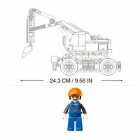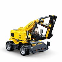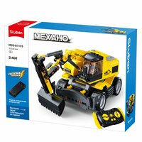 Конструктор Sluban Экскаватор послужит отличным подарком юным механикам. Экскаватор может двигать ковшом, ездить вперед-назад и поворачивать, а также фиксироваться стойками на месте.