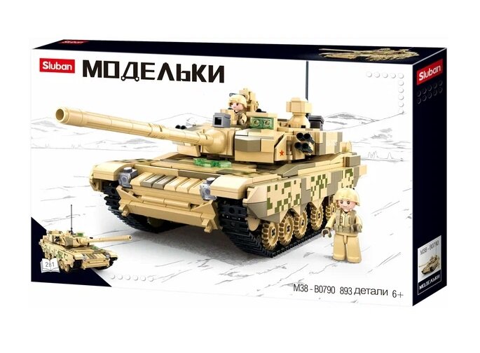 Конструктор SLUBAN Модельки M38-B0790 Китайский танк ZTZ-99A (893дет, 2 фиг, 30,7см)