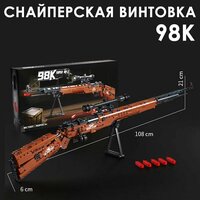 Игрушечная пневматическая снайперская винтовка конструктор Kar98K. Винтовка выполнена из качественных материалов, утяжеленного пластика в цветовой гамме «под дерево» и приятного на ощупь.