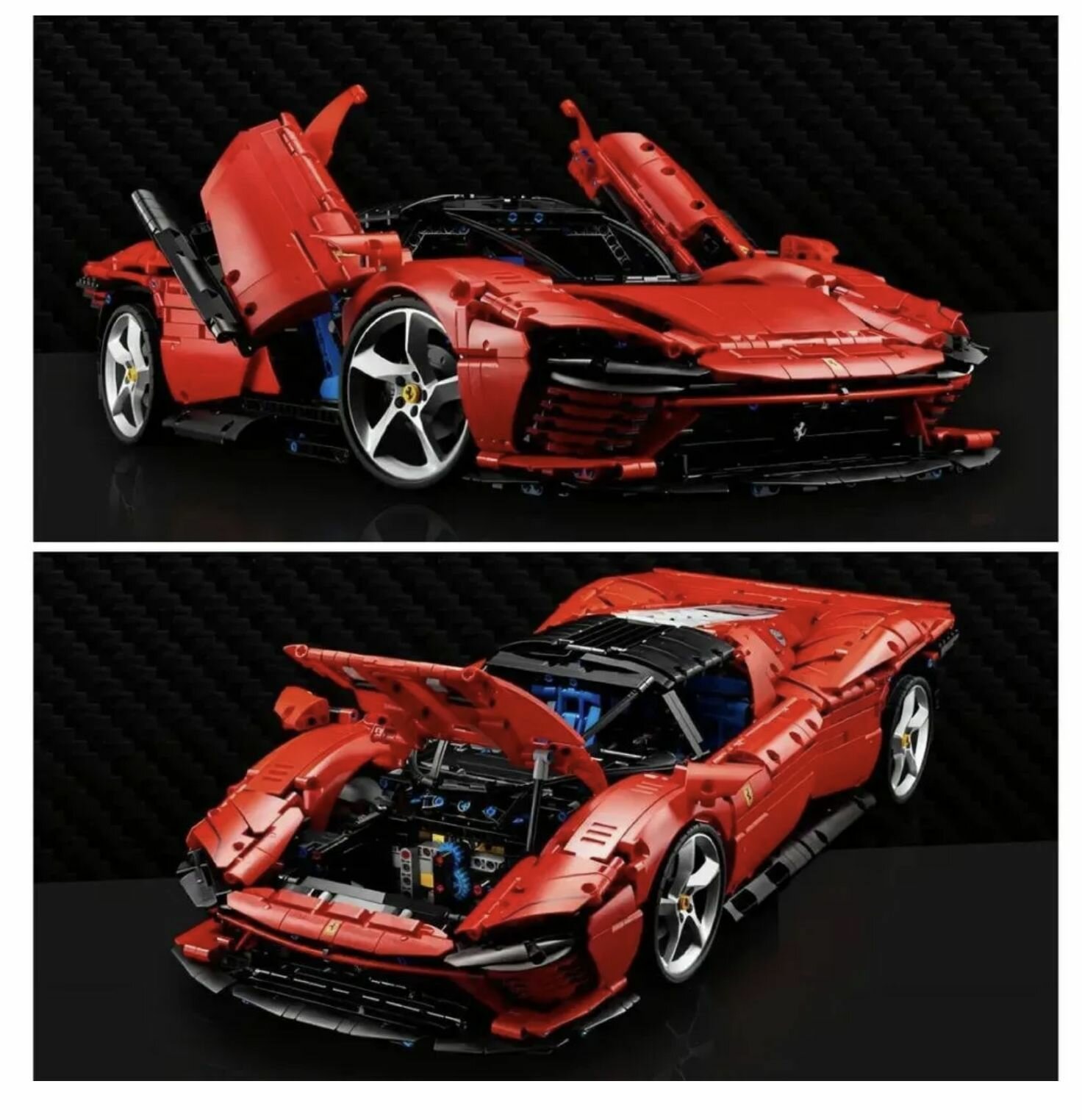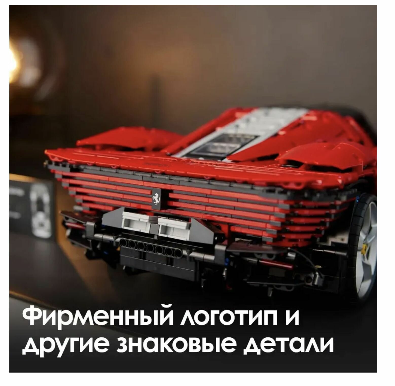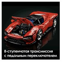 Культовый автомобиль Феррари Дайтона от легендарного автопроизводителя. Ferrari Daytona SP3 меняет представление о том, насколько красивым может быть суперкар. И фабрика тесно сотрудничала с Ferrari, чтобы наша элегантная копия Technic максимально соответствовала оригиналу. Знаете ли вы, что Ferrari производит всего 599 настоящих автомобилей Ferrari Daytona SP3? К счастью для вас, достать Technic Ferrari Daytona SP3 немного проще… Создайте рабочую 8-ступенчатую секвентальную коробку передач для своего изысканного двигателя V12. Феррари представила воздушные камеры для этого автомобиля. Каждая волнообразная кривая. Каждый хромированный обод. Каждая скачущая лошадь. Этот набор больше, чем модель автомобиля. Это дань. Длина модели Феррари Дайтона: 59 см.