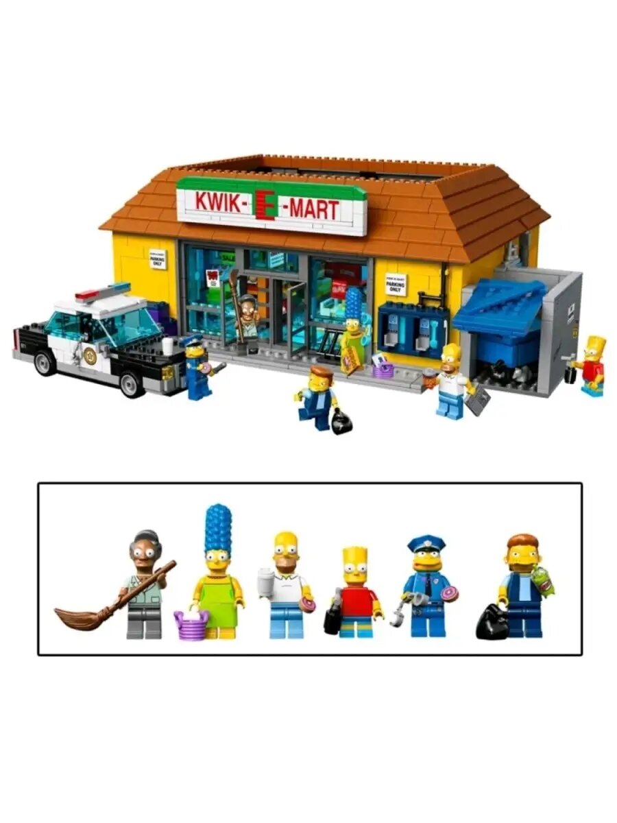 Конструктор пластиковый Симпсоны: Магазин На скорую руку. Теперь поклонники культового мультсериала смогут собрать еще одну запоминающуюся локацию-знаменитый магазин в Спрингфилде с узнаваемым экстерьером и вывесками и подробным внутренним убранством. В наборе предусмотрено 6 минифигурок-Гомер, Барт и Мардж Симпсоны, хозяин магазина Апу, Кленси Виггам и Снейк Джейлберд. Вы и ваш сыночек или доченька здорово проведете время, собирая этот конструктор. Помимо развлекательной функции он способствует развитию творческого мышления и тренирует мелкую моторику пальцев. Детские психологи считают, что с помощью такой игрушечки ребенок прививает у себя самостоятельность, усидчивость и внимательность. Кроме этого, он учится конструировать и воплощать в жизнь придуманные модели и образы. Конструктор по знакомому и любимому фильму, сериалу или мультику-отлично впишется в Ваш интерьер, и заинтересует даже тех людей, которые ранее не интересовались сборкой моделей. Все наборы имеют удивительную особенность: создавать точную атмосферу, как в Вашем любимом произведении, воссоздавая миниатюры героев и важные детали в локациях. В основном конструкторы состоят из избранных идей фанатов, благодаря которым они получились такими живыми и разносторонними. Эти взрослые оставляют идеи на платформе Ideas и тем самым становятся активными участниками в процессе создания новых наборов от небольших детских комплектов до огромного реалистичного моделирования экспертной степени. При любом раскладе, набор найдется для каждого ребенка и точно станет отличным подарком и для мальчика, и для девочки, ведь у любого ребенка есть любимый фильм и мультфильм. Совместите приятные и полезные вещи с Лeго позволяя себе и ребенку с интересом проводить время и развивать необходимые для каждого навыки-усидчивость, абстрактное мышление, логику и память. Кроме того, конструктор является еще и полезной игрушкой, потому что требует от малыша внимание, сосредоточенность и аккуратность.