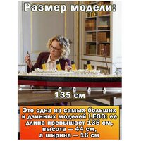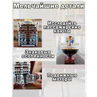 С тех пор, как в 1912 году «Титаник» отправился в свое роковое первое плавание, знаменитый корабль покорил воображение всего мира. Теперь вы можете отдать ему дань уважения с помощью этой колоссальной коллекционной модели «Титаник». Реалистичная масштабная модель Эта модель в масштабе 1:200 состоит из трех секций и точно воспроизводит все особенности «Титаника». В поперечном разрезе можно увидеть такие детали интерьера, как столовая первого класса, парадные лестницы, одно из котельных отделений и множество кают для пассажиров различного класса. Оживите историю «Титаника», воссоздав такие детали, как корабельный мостик, прогулочная палуба, зал для чтения, бассейн и многое другое. Более 9000 деталей, чтобы собрать колоссальную модель «Титаник» — одна из самых больших моделей в истории: его длина составляет более 135 см, а более 9000 деталей займут вас захватывающей сборкой на много часов. В результате у вас получится потрясающая модель, которой можно гордиться.