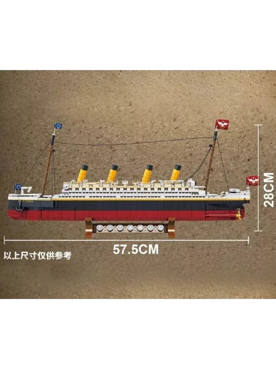 Набор для сборки Титаник включает в себя 1507 деталей. Из деталей набора можно собрать тщательно проработанную модель легендарного корабля. И с помощью минифигурок разыграть сцены из не менее известного фильма. В комплект входит подставка, что позволит разместить данный конструктор в коллекции.