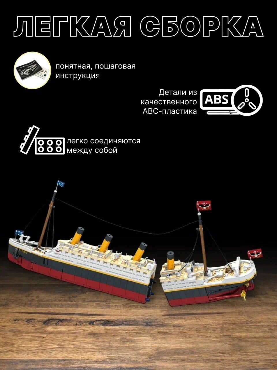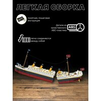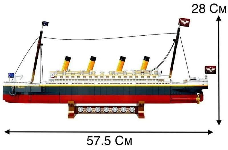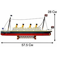 Конструктор Титаник лайнер, 1507 деталей Конструктор Титаник представляет собой реалистичную и детализированую игровую модель корабля из фильма Джеймса Кэмерона. Длина круизного лайнера составляет 57 см, высота 28 см. Большая модель выполнена в масштабе 1:450 . • Многовариантность игры: Конструктор позволит ребенку воспроизвести сцены, где огромный круизный лайнер класса Олимпик переживает кораблекрушение. Для этого модель корабля действительно разламывается пополам. Разлом Титаника можно повторять бесчисленное количество раз, отыгрывая новые и новые сюжеты. 3Д конструктор повторяет не только внешний вид известного парохода, но и воспроизводит некоторые интерьеры кают игрушечного кораблика. Так ребенок сможет повторить известные моменты из фильма: написание портрета Розы, эпизод заката на носу корабля, где герои наслаждаются иллюзией полета. А при желании даже сможет написать собственный сценарий и спасти героев. Конструктор Титаник понравится не только киноманам, но и коллекционерам водного транспорта. Оригинальный макет украсит коллекцию моделиста. Известный всему миру британский трансатлантический пароход никого не оставит равнодушным и станет звездой коллекции. Игровой набор включает 1507 мини блоков, которые позволяют собрать модель корабля, а также 2 минифигурки.• Для развития ребенка: Конструктор техники – это сборный конструктор из мини деталек. В процессе сборки, ребенок развивает мелкую моторику, математические способности, тренирует инженерные и конструкторские навыки. Научно доказано, что игры в конструктор для мальчиков положительно сказываются на обучении и освоении точных наук. • Комплектация набора Титаник модель 099:- Мини блоки 1507 деталей;- 2 фигурки персонажей; - Инструкция по сборке;- Коробка.