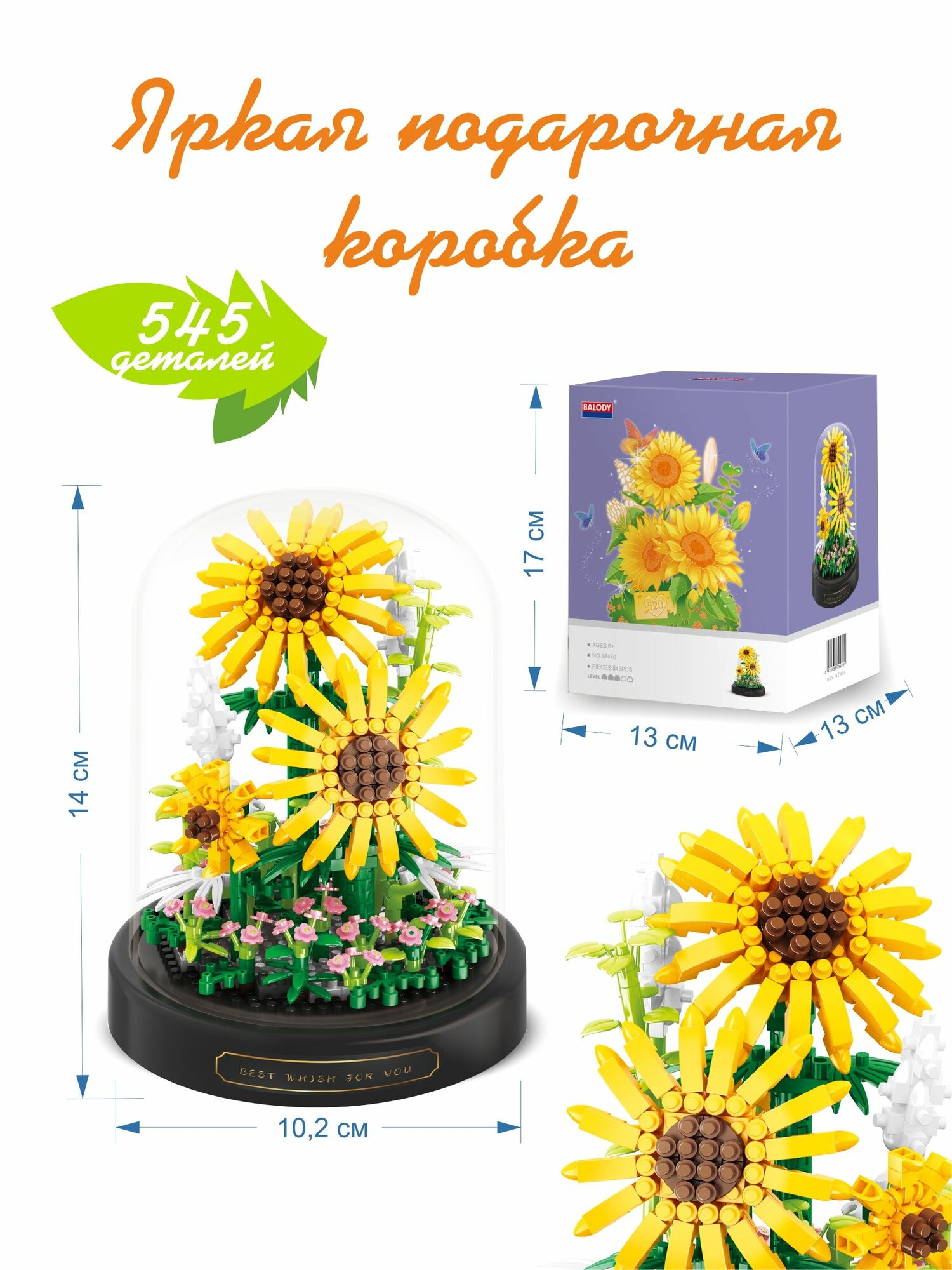 Конструктор «Цветы подсолнухи», 3D, блочный, 365 деталей, в колбе: сравнение цен, характеристики, фото, актуальное наличие и цены.