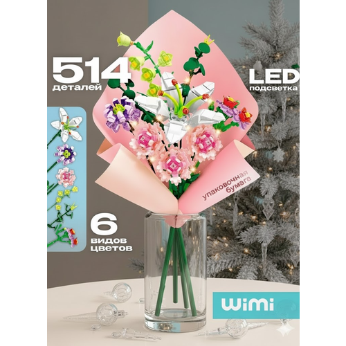 Создавайте свои собственные цветочные шедевры с конструктором цветы! В комплект входит 514 красочных деталей, которые позволят вам создать уникальный букет в 3D формате. Красочная подарочная упаковка послужит отличным сюрпризом на любой праздник. Внутри вы найдете подробную инструкцию, ленту и бумагу для оформления вашего цветочного шедевра. Конструктор подходит как для детей от 6 лет так и для взрослых, которые любят моделирование и головоломки. В набор входит множество различных видов цветов, декоративных колосков и листьев: розовая и белая роза, лаванда, эвкалипт, маргаритка и другие растения. Красивый, пышный, удивительно вдохновляющий конструктор Букет цветов способен разбудить творческий потенциал и стимулировать фантазию. После сборки готовая модель - это целое произведение искусства, высокая детализация достигается за счет мини блоков. Эта композиция обязательно станет украшением Вашего интерьера. А едва собрав одну модель, сразу начинаешь выбирать следующую. Развивающий набор для детей станет прекрасным подарком на день рождения, новый год, 14 февраля или просто для того, чтобы порадовать свою дочку, внучку или подругу. Набор содержит крупные пластиковые миниблоки, которые легко соединяются между собой. Это не обычная игра, а еще и возможность развивать логику, усидчивость, внимательность, образное и критическое мышление у детей. Конструктор также подходит для метода Монтессори, который помогает развивать творческие и логические навыки у детей. И не стоит забывать, что даже маленькие принцессы любят цветы, а такой букет никогда не завянет. Он будет радовать хозяйку очень долго и напоминать о приятных моментах. Набор выполнен в ярких цветах, которые привлекают внимание, но не вызывают раздражение. Детали приятные на ощупь, их легко совмещать между собой. В подарок в набре также идет LED-подсветка, которая позволит украсить ваш итоговый букетик и добавить ему интерьерный шик. Конечный вариант букета из этого конструктора станет отличным подарком для бабушки или девушки любого возраста.