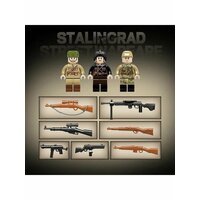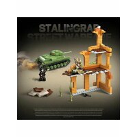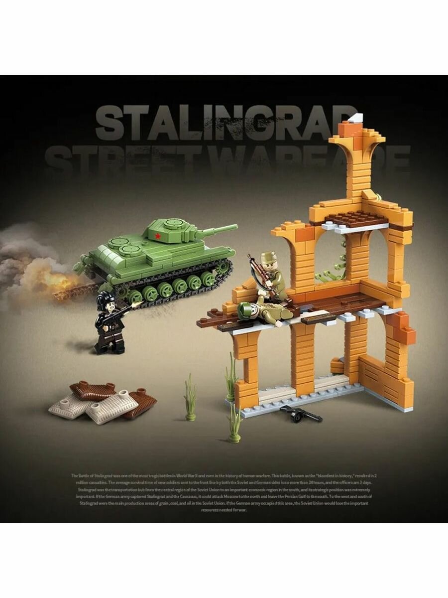 Набор позволит вам воссоздать одну из сцен, имевших место в Сталинградской битве. Сталинградская битва — одно из важнейших и крупнейших генеральных сражений Второй мировой и Великой Отечественной войн между Красной армией и вермахтом при поддержке армий стран «оси», закончившееся победой РККА. Битва происходила с 17 июля 1942 года по 2 февраля 1943 года на территории современных Воронежской, Ростовской, Волгоградской областей и Республики Калмыкия.