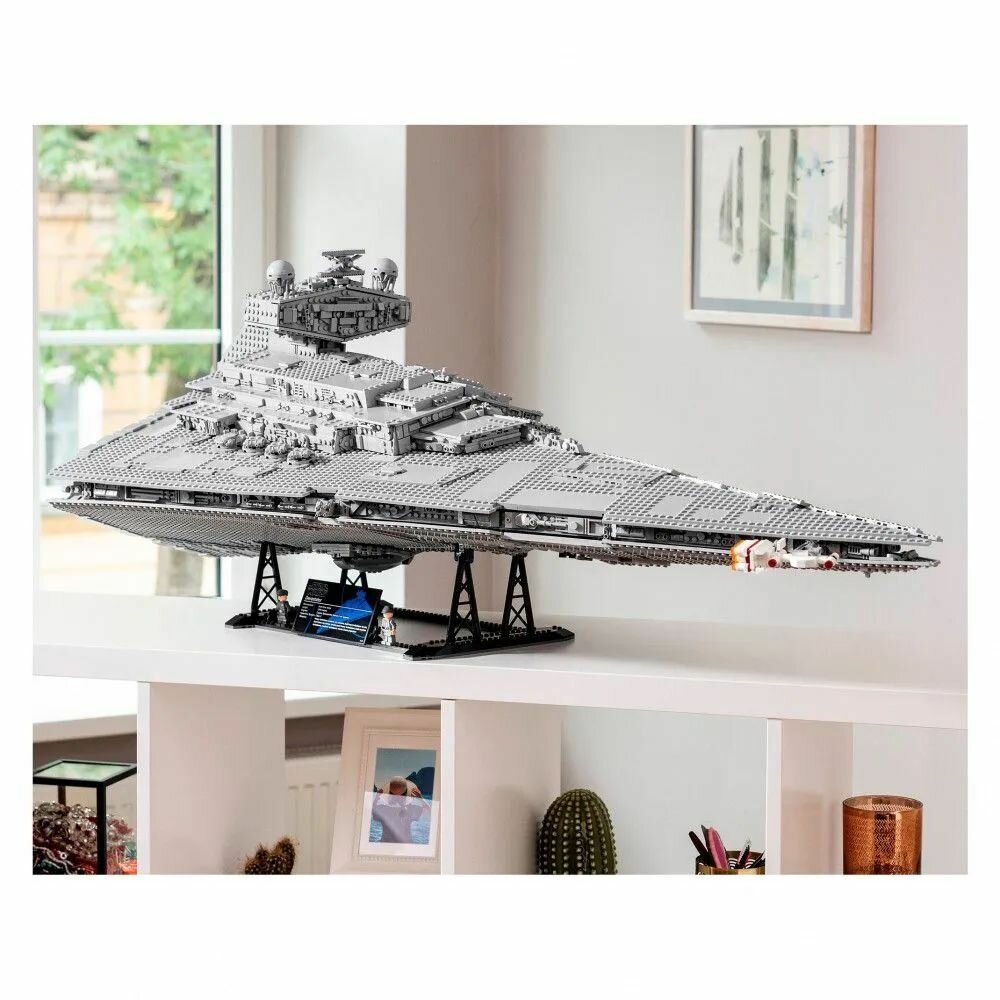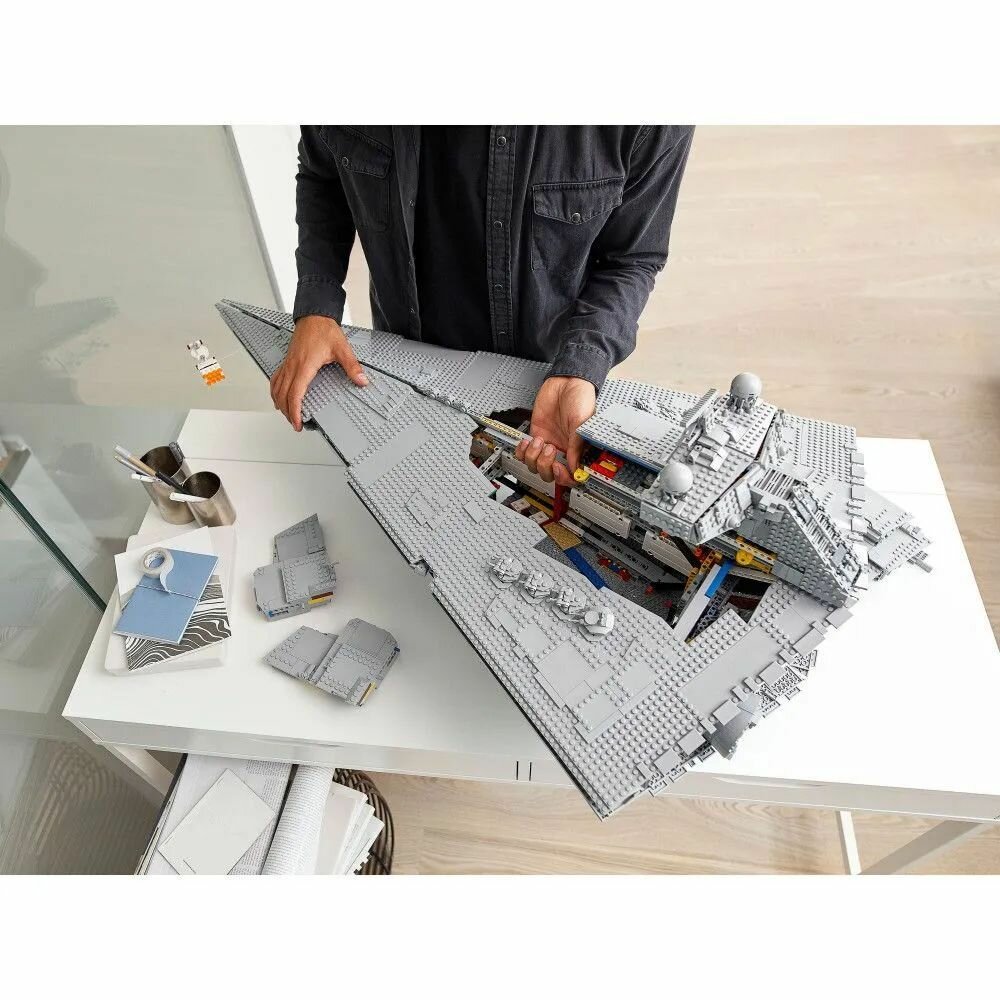 Соберите символ Галактической Империи — звёздный разрушитель! Эта модель, состоящая из 4784 деталей, передает все аутентичные детали звездолета, включая поворотные пушки, наклонную антенну радара, огромный двигатель.