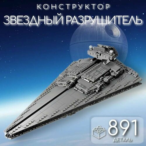 Легко узнаваемая клиновидная форма Звёздного разрушителя вселяла ужас в души всех обитателей Галактики. Непревзойдённая мощность и маневренность звездолёта позволяла покорять целые планеты, или наносить несокрушимые удары по силам противника. Вооружение Звёздного разрушителя состояло из вереницы двойных тяжелых турболазеров, расположенных по обе стороны корпуса, и многочисленных малых лазерных и ионных орудий. Центральное место в конструкции корабля занимала командная башня, возвышающаяся над двигателями. В ней размещались системы управления, сканирующие приборы, главный бортовой компьютер и капитанский мостик. Из деталей набора Вы сможете построить детализированную модель Имперского Звёздного разрушителя.