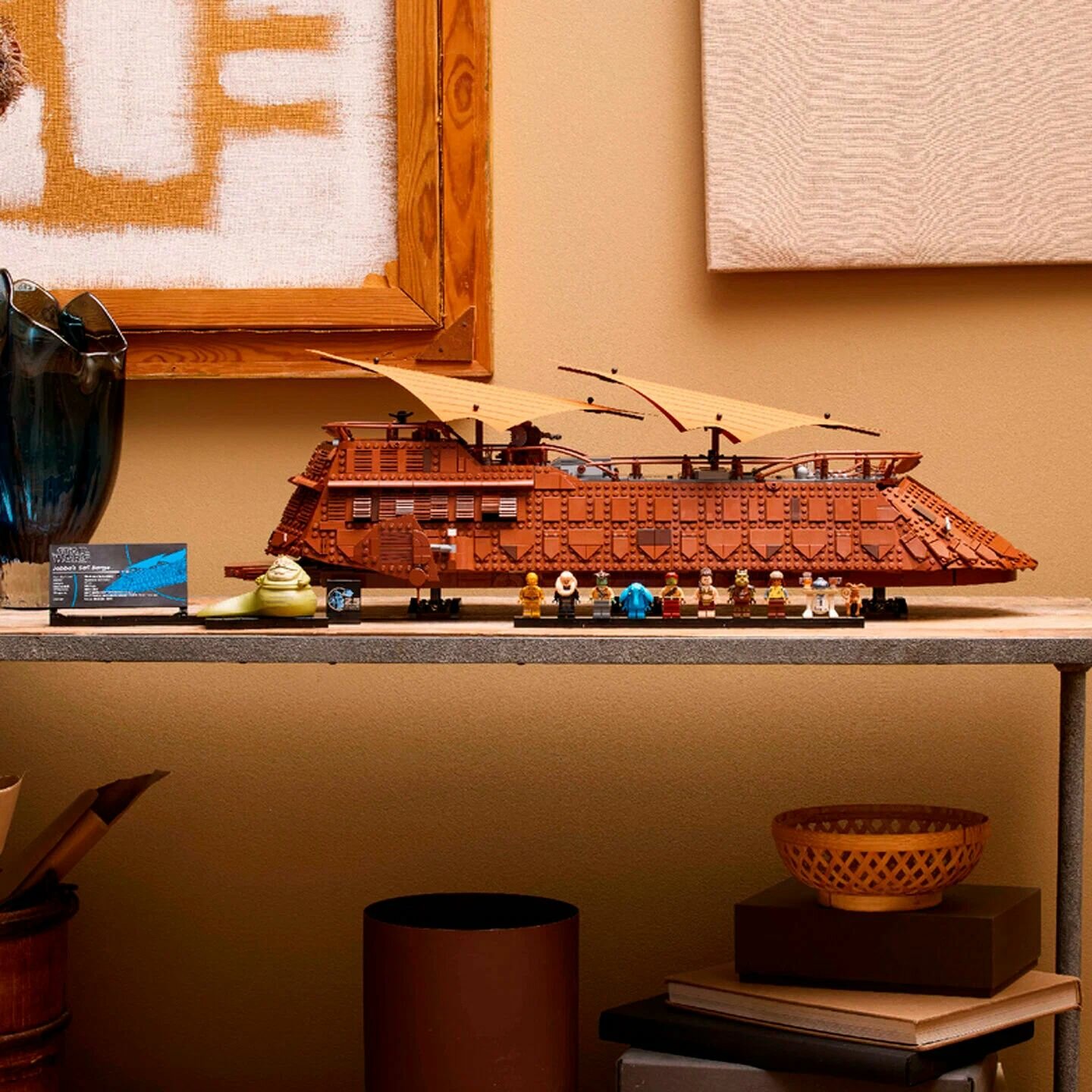 Создайте легендарные сцены из «Star Wars: Возвращение джедая» с этим впечатляющим конструктором, посвящённым Барже Джаббы Хатта! Эта модель станет отличным подарком для взрослых любителей Star Wars и конструкторов. Баржа длиной 77 см, высотой 25 см и шириной 25 см оснащена текстильными парусами, которые можно поднимать, а также верхней палубой и боковыми частями, открывающими доступ к детализированному интерьеру. В комплекте 11 коллекционных минифигурок из Star Wars, включая C-3PO, Принцессу Лею, Биба Фортуну и R2-D2 с барным столиком. Внутри баржи вы найдёте кабину пилота, тюремную камеру, арсенал, кухню и спальню Джаббы.