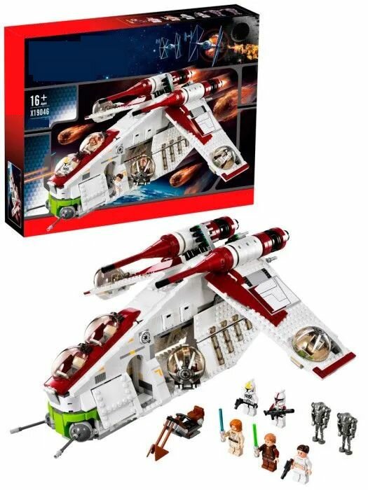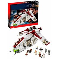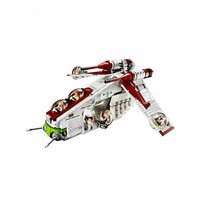 Конструктор Звездные войны Республиканский истребитель состоит из 1228 деталей. Комплект дарит прекрасную возможность собрать знаменитый десантно-штурмовой корабль Великой армии Республики под управлением пилота-капитана и пилота-клона. Благодаря откидывающимся стенкам транспорт смотрится особенно реалистично. Создайте свой сюжет высадки повстанцев из саги Звездные Войны. Уникальный десантный корабль, способный летать на низких высотах, известен как штурмовой транспорт Великой армии Республики.