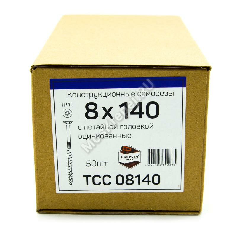 Конструкционные саморезы с зенкером для работы по дереву без предварительного засверливания. Имеют широкий диапазон применения в строительстве. Специальная резьба предотвращает раскалывание дерева даже при работе близко к краю. Головка под TORX с дополнительным стержнем обеспечивает надежную передачу крутящего момента с биты и исключает её срыв. «Резьбовая фреза» обеспечивает уплотнение стружки и облегчает вход самореза в материал.