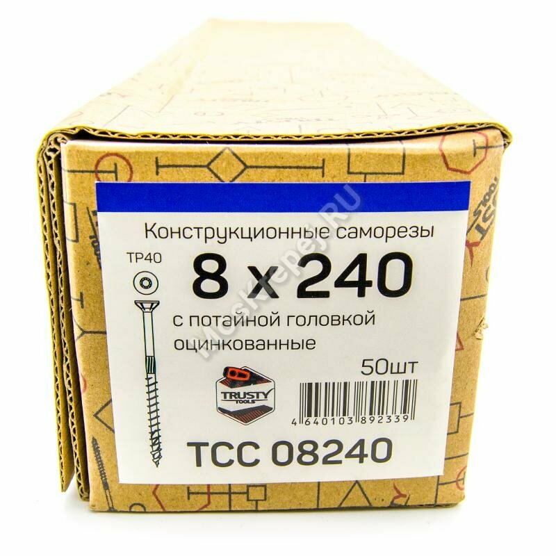 Конструкционные саморезы с зенкером для работы по дереву без предварительного засверливания. Имеют широкий диапазон применения в строительстве. Специальная резьба предотвращает раскалывание дерева даже при работе близко к краю. Головка под TORX с дополнительным стержнем обеспечивает надежную передачу крутящего момента с биты и исключает её срыв. «Резьбовая фреза» обеспечивает уплотнение стружки и облегчает вход самореза в материал.