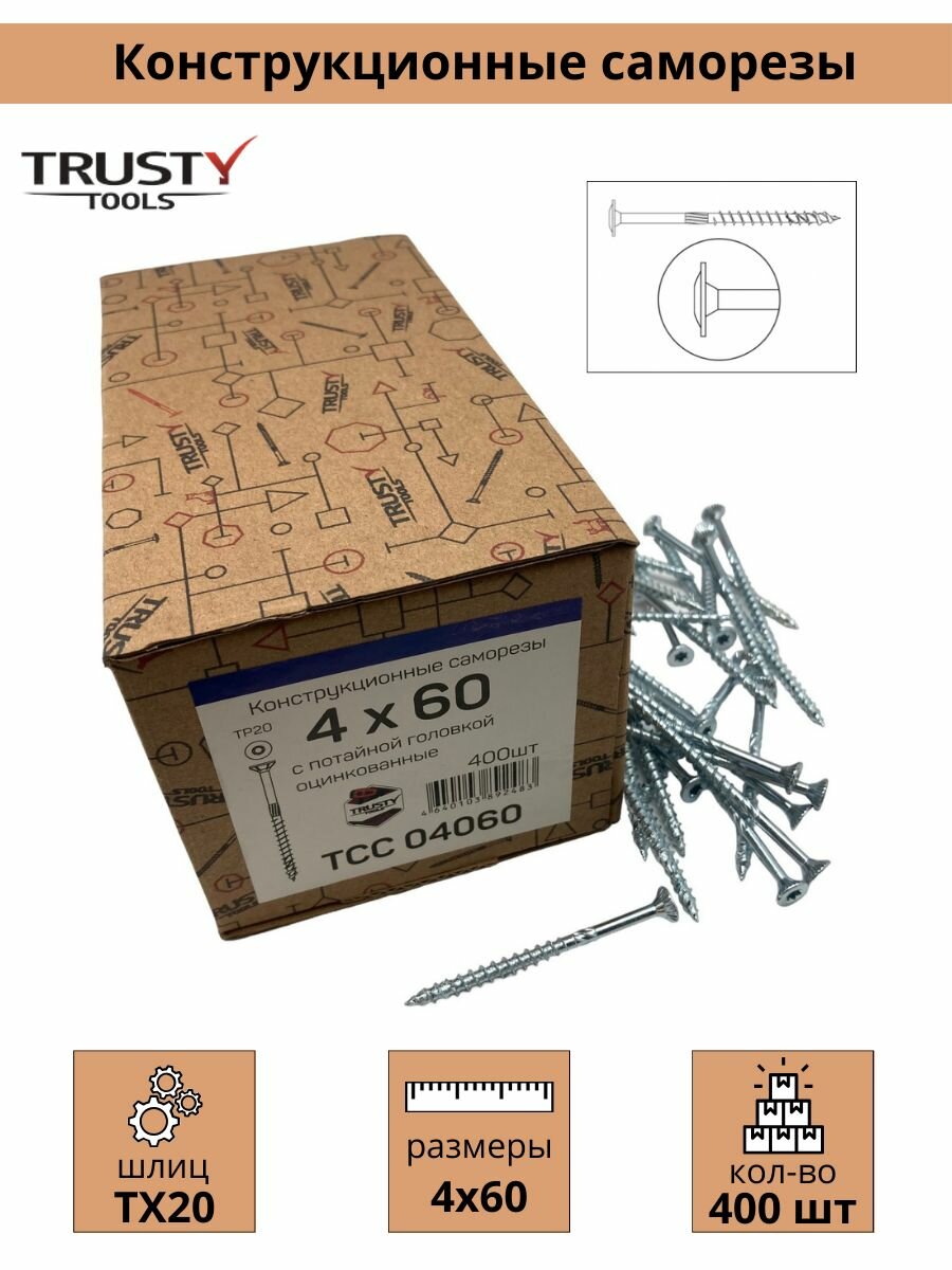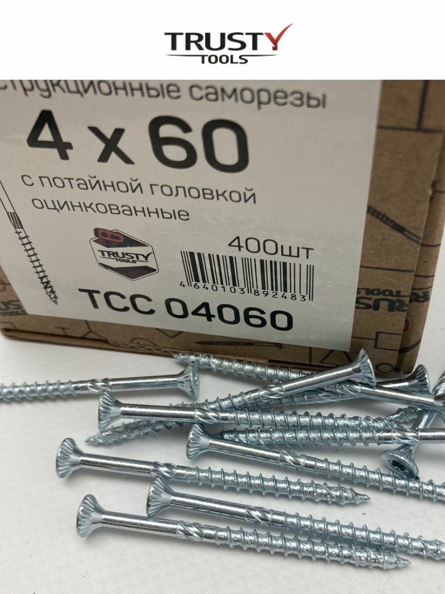 Конструкционные саморезы Trusty TCC 4х60 потайные 400шт: сравнение цен, характеристики, фото, актуальное наличие и цены.