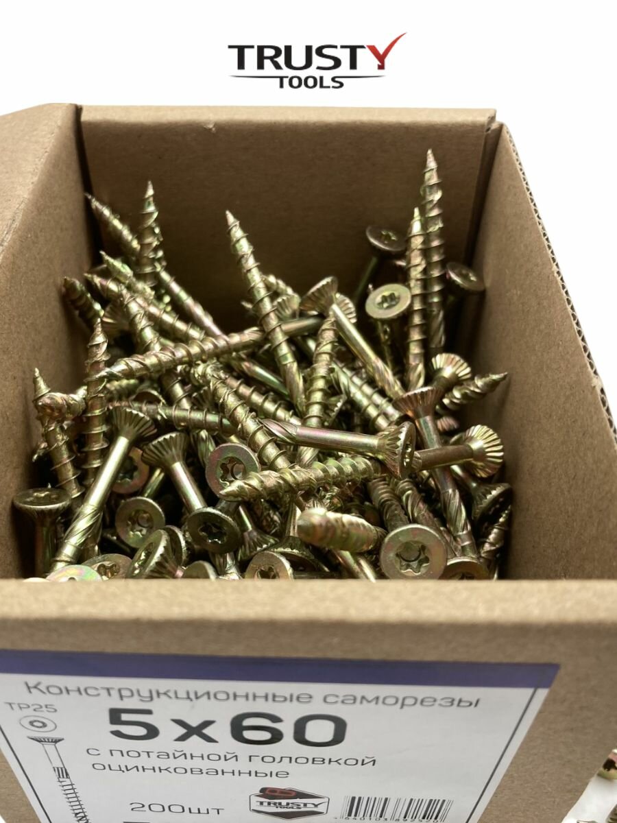 Конструкционные саморезы Trusty-Tools производятся на фабрике в Китае, которая делает саморезы для немецких и итальянских брендов. Высокое качество продукции подтверждается регулярными испытаниями прочностных характеристик. Инженеры фабрики проверяют саморезы на изгиб, растяжение, выдергивание, сопротивление протаскиванию головки через материал и прочие тестовые процедуры.