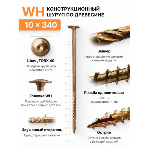 Купить Конструкционный шуруп по дереву 10X340, головка WH — плоская пресс шайба с доставкой по всей России. Конструкционный шуруп по дереву 10X340, головка WH — плоская пресс шайба: сравнение цен, характеристики, фото, актуальное наличие и цены.