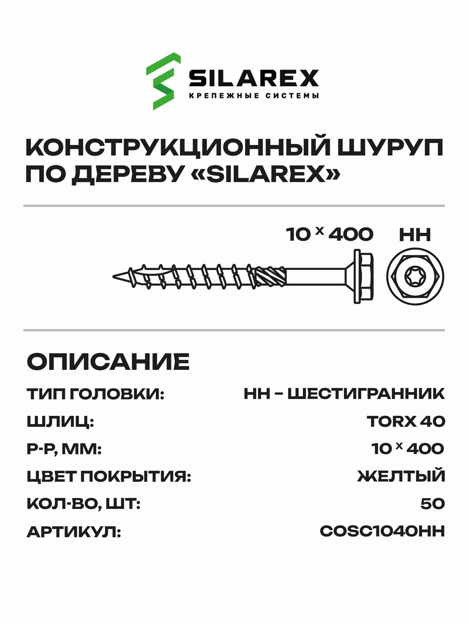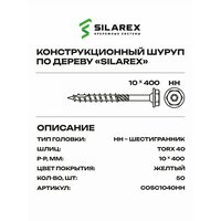 Конструкционный шуруп по дереву 10X400, головка HH — шестигранная головка с пресс шайбой: сравнение цен, характеристики, фото, актуальное наличие и цены.