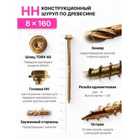 Конструкционный шуруп по дереву 8х160, головка HH — шестигранная головка с пресс шайбой: сравнение цен, характеристики, фото, актуальное наличие и цены.