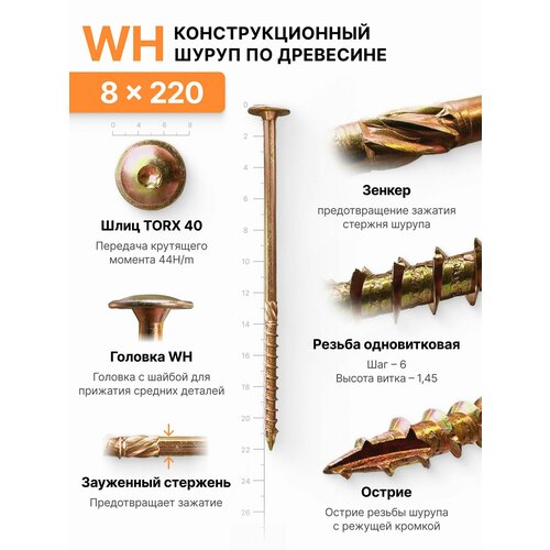 Конструкционный шуруп по дереву 8х220, головка WH — плоская пресс шайба: сравнение цен, характеристики, фото, актуальное наличие и цены.