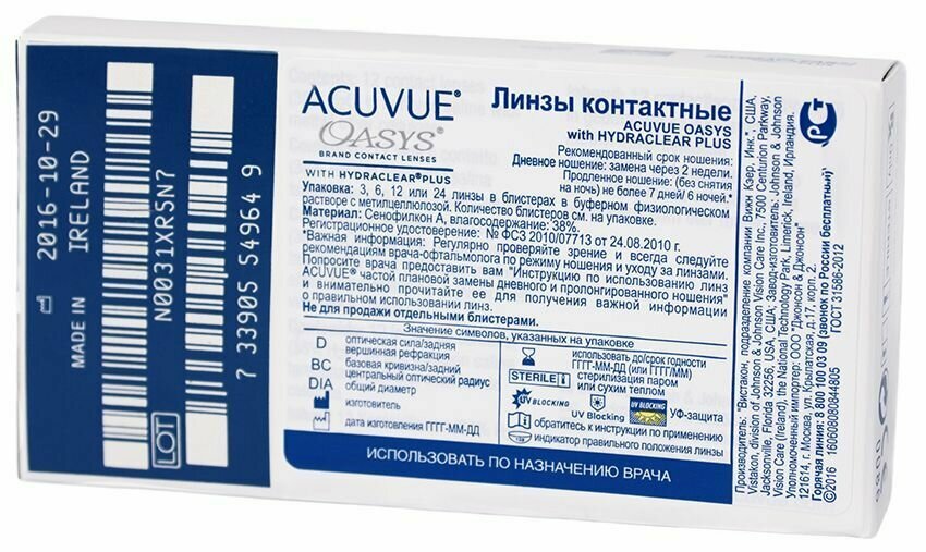 Контактные линзы Johnson & Johnson (Acuvue) Acuvue Oasys with Hydraclear Plus 12 линз R 8,4, D -1: сравнение цен, характеристики, фото, актуальное наличие и цены.