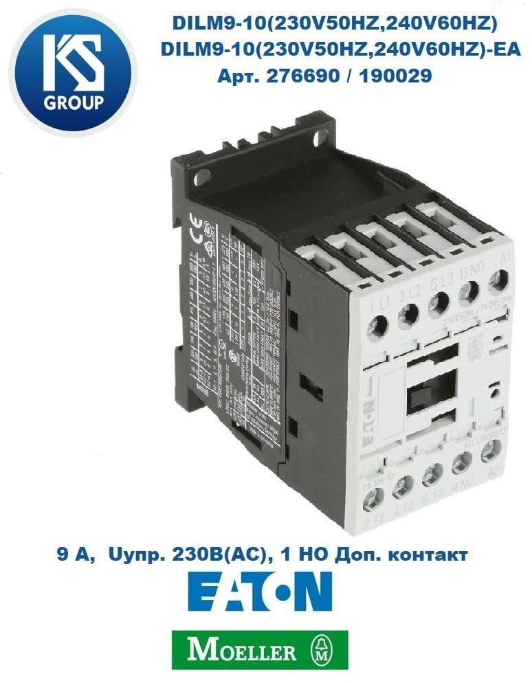 DILM9-10/DILM9-10-EA (230V50HZ,240V60HZ) Контактор 9 А, управляющее напряжение 230В (АС), 1 но доп. контакт, категория применения AC-3/AC-4, MOELLER / EATON ) Арт. 276690/190029: сравнение цен, характеристики, фото, актуальное наличие и цены.