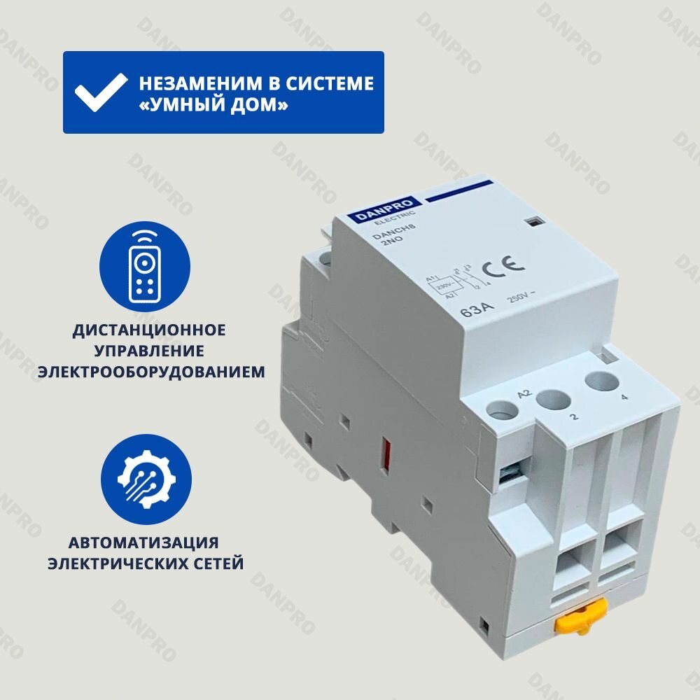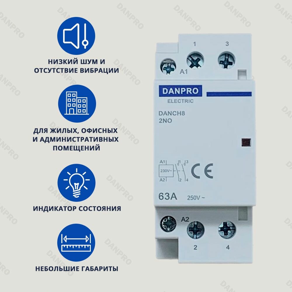 Контактор модульный DANPRO DANCH8-2NO63А нормально открытый на DIN рейку