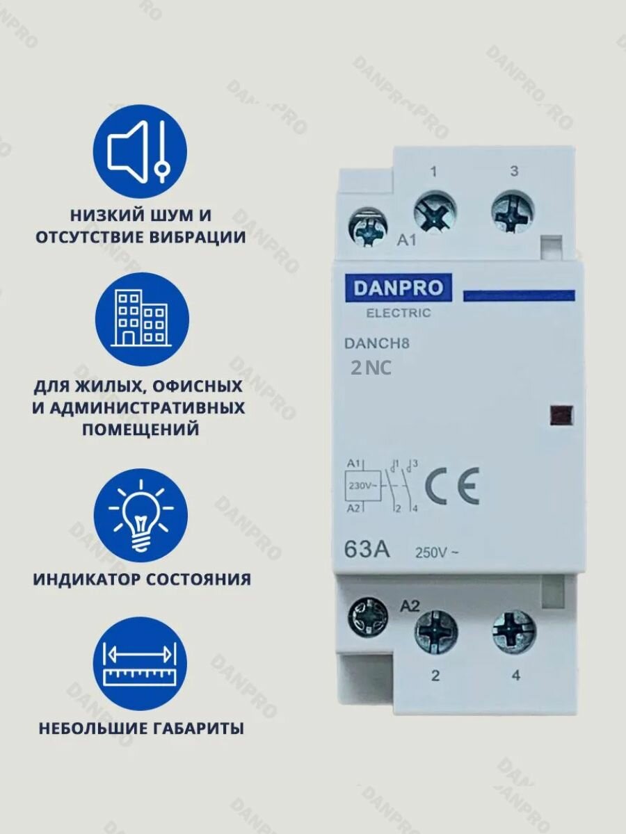 Купить Контактор модульный DANPRO DANCH8-2NZ63A нормально закрытый на DIN рейку трехфазный с доставкой по всей России.