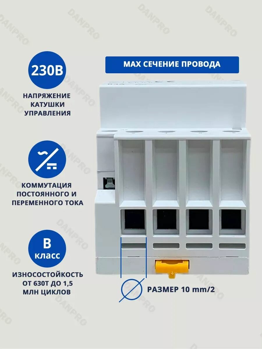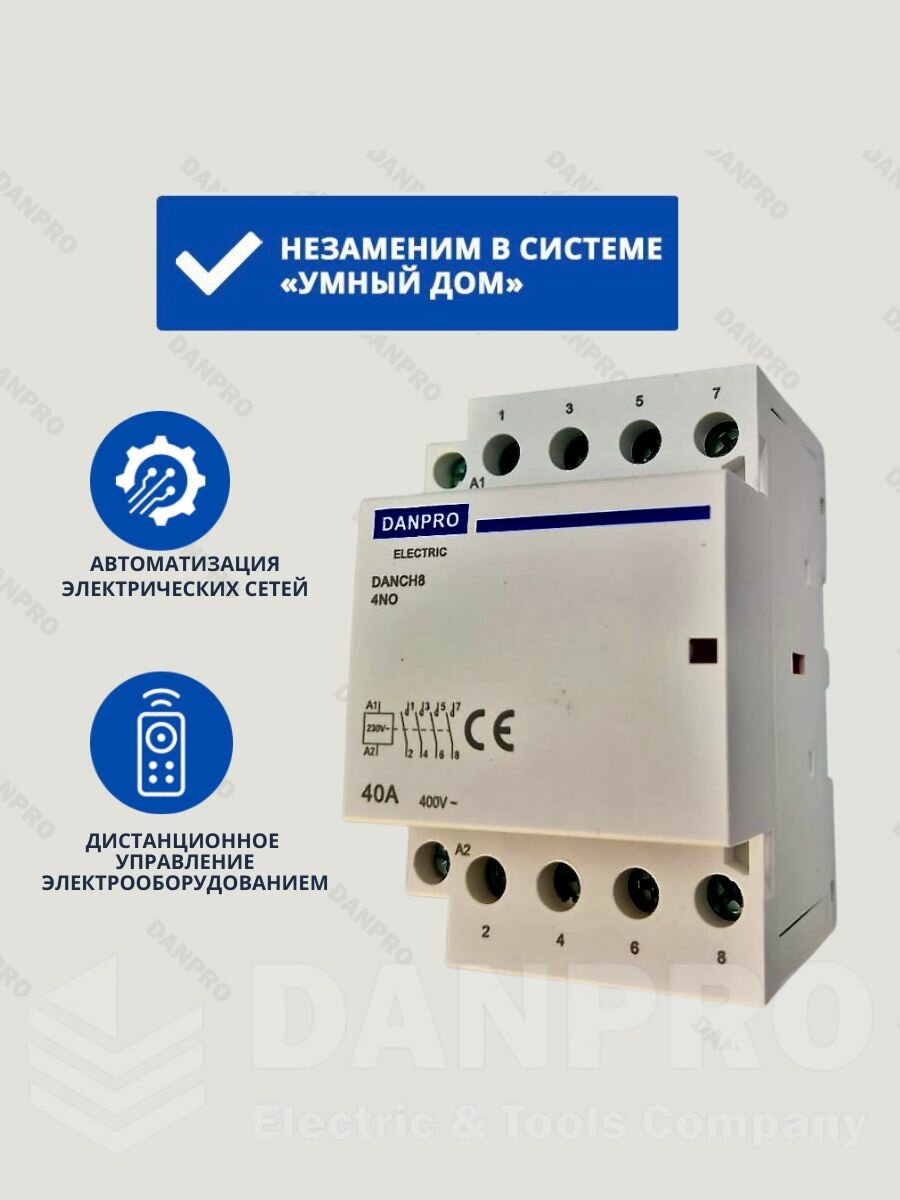Контактор модульный DANPRO DANCH8-4NO 40А нормально открытый на DIN рейку