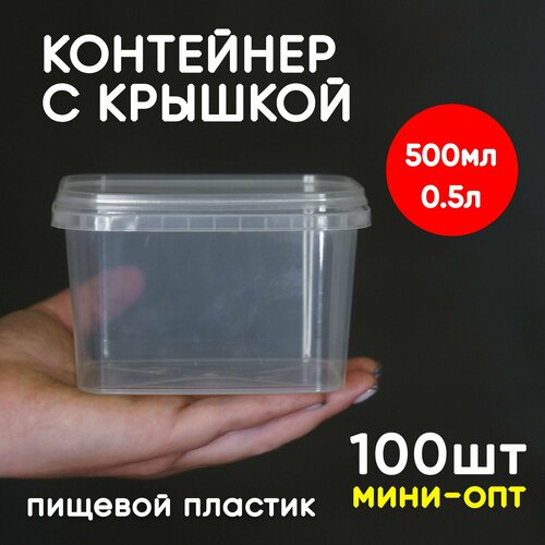 Контейнер пластиковый 0,5 литр (500 мл) набор из 100 шт, одноразовый, для хранения еды, пищевых продуктов и заморозки, прямоугольный с герметичной крышкой, миниопт: сравнение цен, характеристики, фото, актуальное наличие и цены.