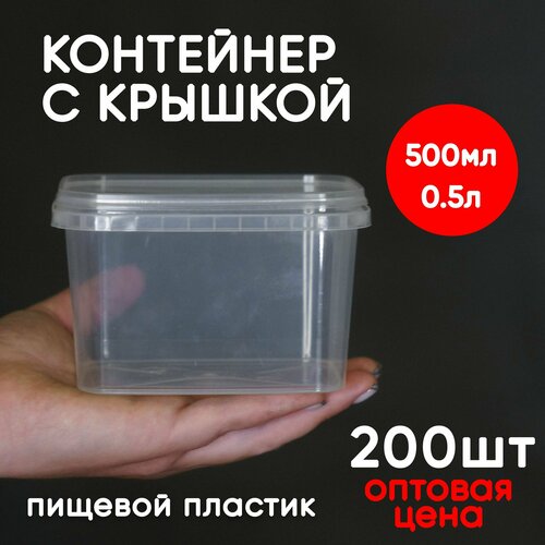 Контейнер 0.5л (500мл) с крышкой из пищевого пластика, 200шт, опт: сравнение цен, характеристики, фото, актуальное наличие и цены.