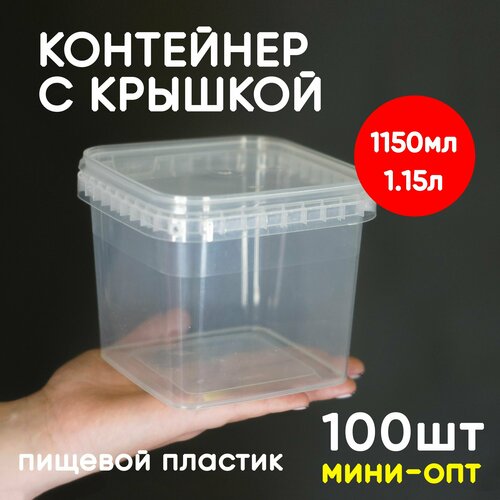 Контейнер пластиковый 1,15 литр (1150мл) набор из 100 шт, одноразовый, для хранения еды, пищевых продуктов и заморозки, квадратный с герметичной крышкой, миниопт: сравнение цен, характеристики, фото, актуальное наличие и цены.