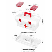Купить Контейнер 16 л 40,5*23,5*21 см «Массимо» Аптечка с крышкой с 2-мя защелками, с 2 вкладышами, бело-красный с доставкой по всей России.