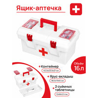 Контейнер 16 л 40,5*23,5*21 см «Массимо» Аптечка с крышкой с 2-мя защелками, с 2 вкладышами, бело-красный: сравнение цен, характеристики, фото, актуальное наличие и цены.
