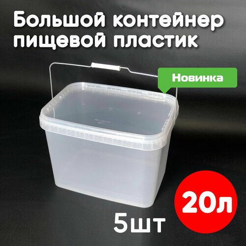 Контейнер большой пластиковый 20 литров, набор из 5 шт, для хранения еды, пищевых продуктов и заморозки, прямоугольный с герметичной крышкой и ручкой: сравнение цен, характеристики, фото, актуальное наличие и цены.