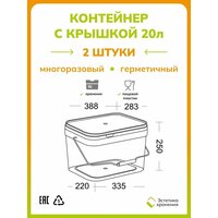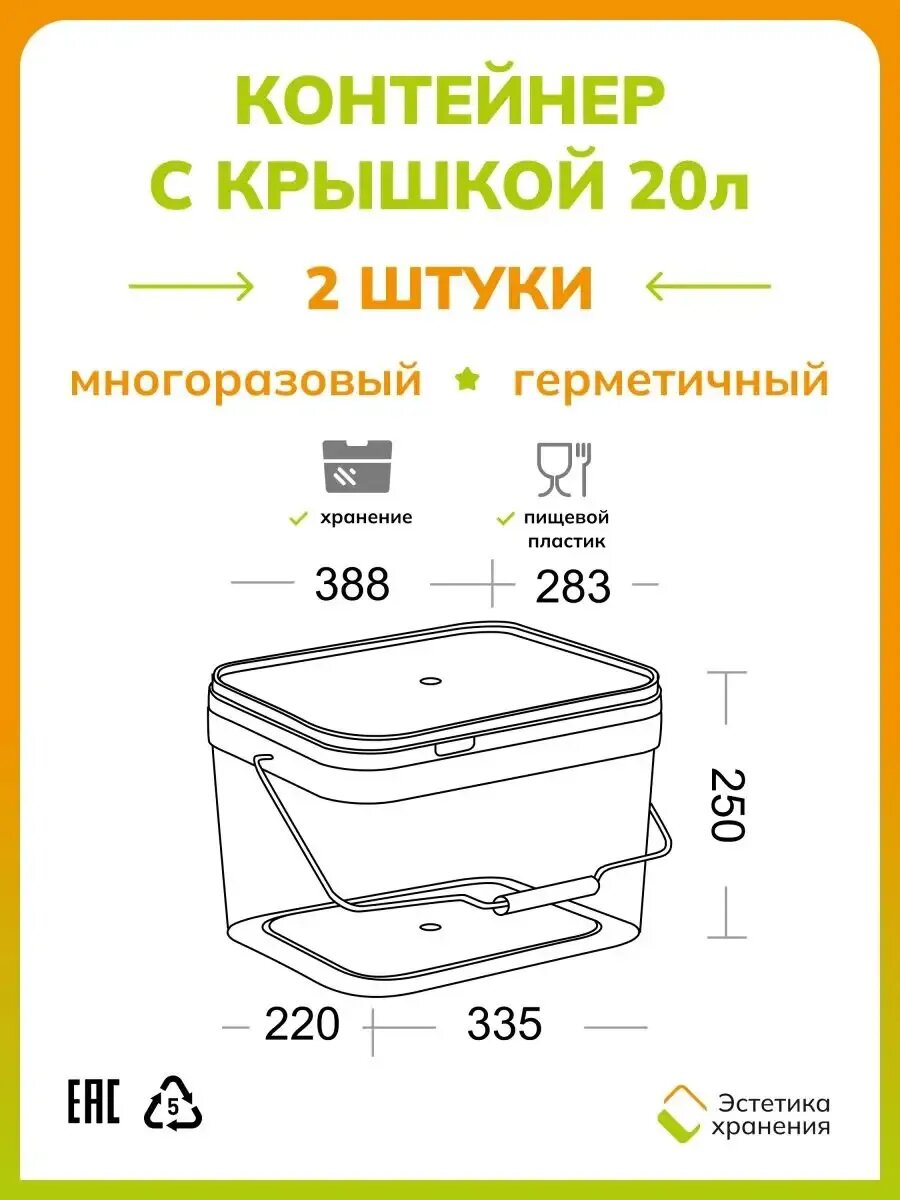 В комплекте 2 прямоугольных контейнера с крышками. Контейнер 20л. Высота с крышкой 25 см, размер по крышке 38,8х28,3 см. Контейнер для упаковки, обуви, инструментов, хранения продуктов, (мед, варенье, джем, грибы, мороженое, мясо и рыба соленые и копченые, шашлык, овощи, фрукты, овощи маринованные и квашеные, салаты, полуфабрикаты, порошок и т. п). Пластиковый контейнер для хранения с крышкой поможет оптимизировать пространство и поддерживать порядок. Прямоугольные пластмассовые коробочки из полимеров удобно разместить в шкафу или на стеллаже. Многоразовый контейнер. Прочный, не деформируется при нагревании (теплостойкость, стойкость к горячей воде). Полностью герметичны, защищены от протечек, не пропускают воздух . Имеет пломбу для контроля вскрытия. Продукция сертифицирована и соответствует установленным стандартам качества. Набор контейнеров, набор пластиковых банок, пластиковая тара.