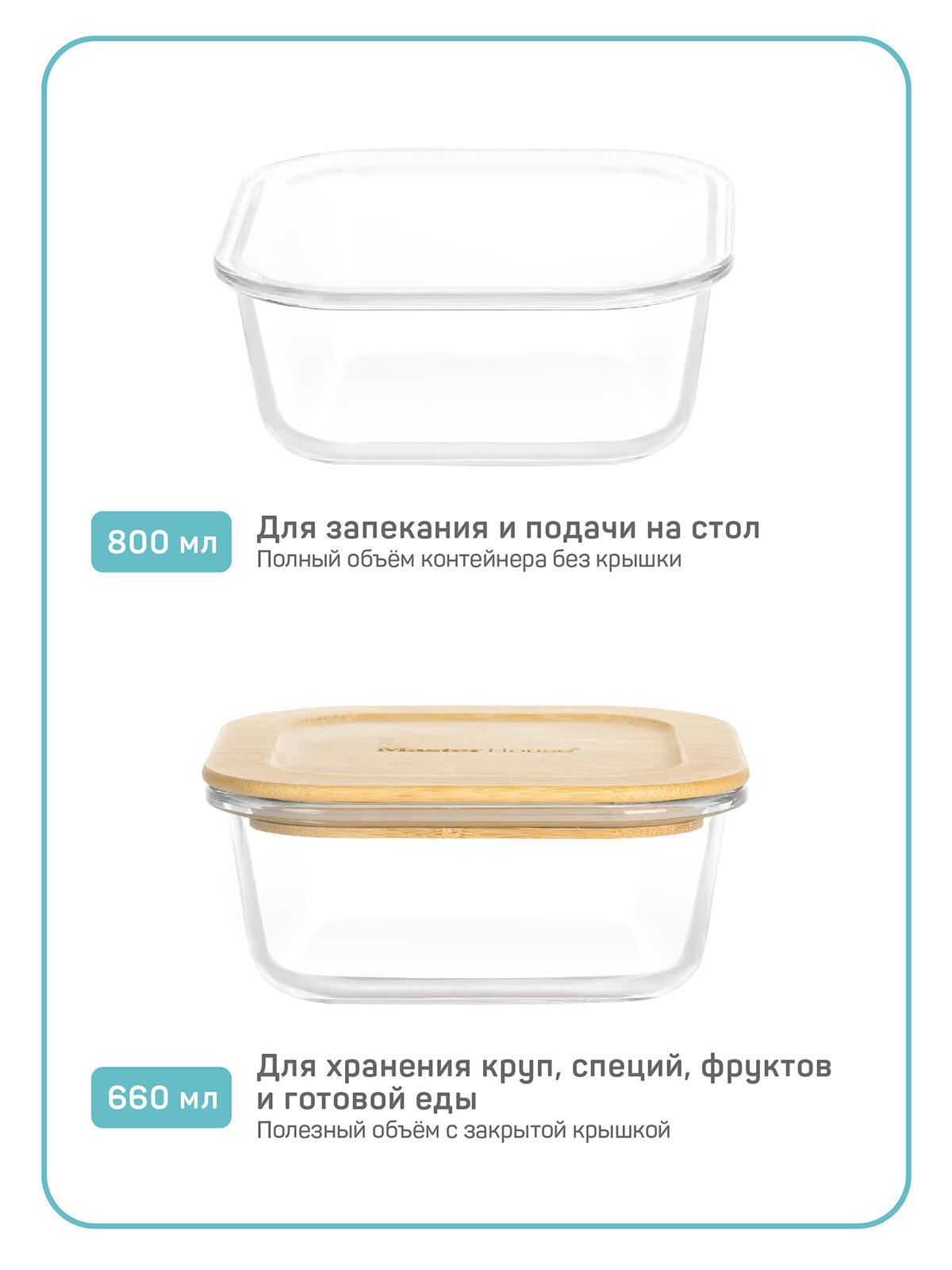 Купить Контейнер для еды стеклянный Master House 800мл с бамбуковой крышкой Тор квадратный для хранения и приготовления с доставкой по всей России. Контейнер для еды стеклянный Master House 800мл с бамбуковой крышкой Тор квадратный для хранения и приготовления: сравнение цен, характеристики, фото, актуальное наличие и цены.