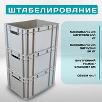 Сплошной дизайн и крышка обеспечивают надежную защиту вашего груза от пыли, грязи и влаги. Контейнеры выполнены в большом размере, что позволяет вместить множество предметов. Внутренний размер составляет 57х37х21,7 см, а общий объем – 44 литр. Благодаря этому, вы можете эффективно организовать хранение любых вещей, от мелочей до овощей и игрушек.