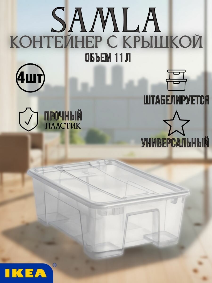 Купить Контейнер для хранения икеа «Самла», пластик, прозрачный, 11л, 4шт с доставкой по всей России. Контейнер для хранения икеа «Самла», пластик, прозрачный, 11л, 4шт: сравнение цен, характеристики, фото, актуальное наличие и цены.