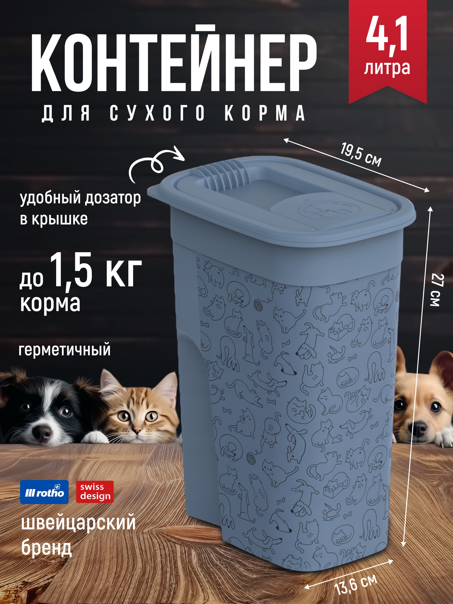 Контейнер для корма Rotho FLO герметичный, с дозатором, 4,1 литра голубой горизонт: сравнение цен, характеристики, фото, актуальное наличие и цены.