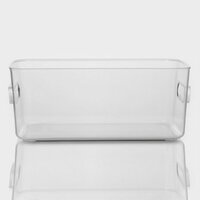 Он прочный и долговечный, так как изготовлен из высококачественного пластика. Он имеет прямоугольную форму, ручки и компактные размеры, что позволяет удобно разместить его на полке в шкафу или антресоли.